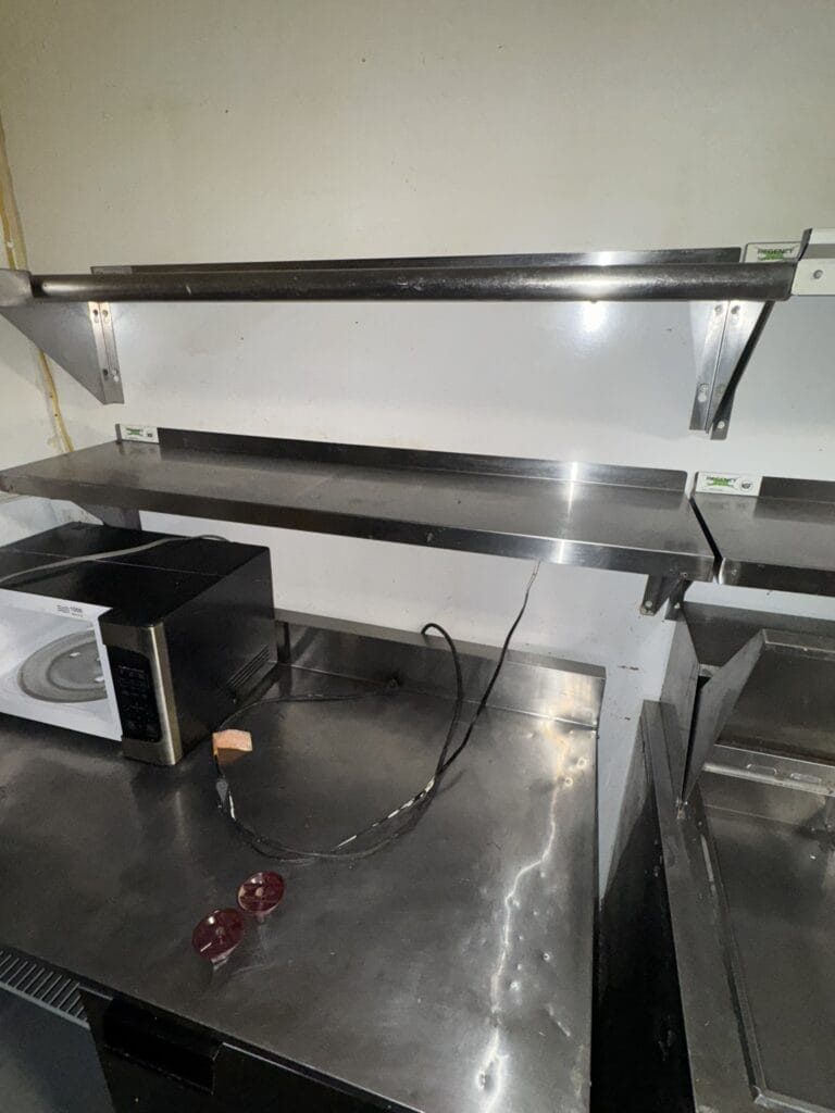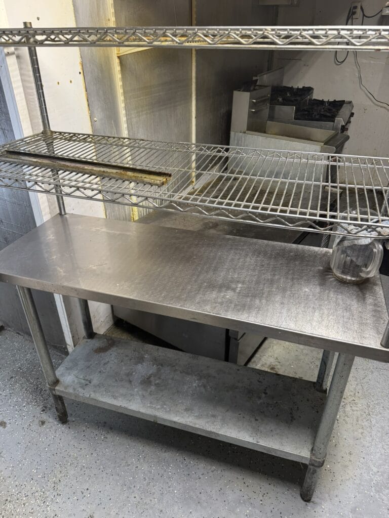 - 48” x 18” stainless steel shelf (Baker’s rack)