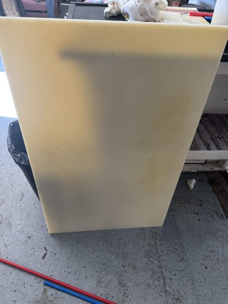 - 48” x 29” stainless steel prep table with cutting board