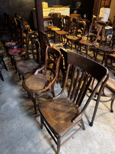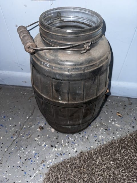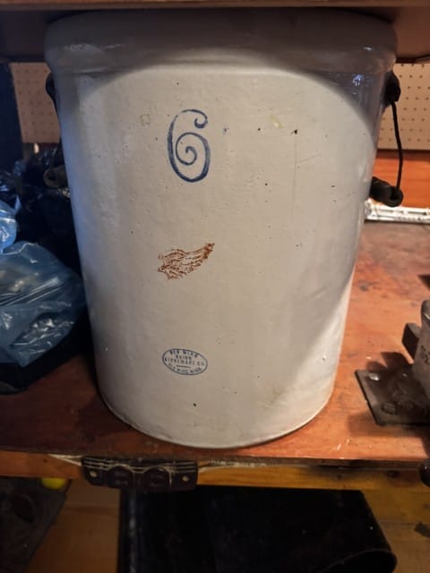 Antiques & Collectibles: #2 dinner bell on stand; roll top secretary with Burl wood; antique setae set; small wood trunk; upright piano; glass claw foot piano stool; dry sink; butter churn; sugar bucket; walnut cased Grandfather clock; bookcase; walnut kitchen cupboard; corner cupboard; chest of drawers with glove boxes; tiger oak dining table; side tables; wash stand; spool cabinet; Chautauqua roller organ; dry sinks; walnut vanity; antique beds; wood chest; dresser with mirror; various chest of drawers; walnut telephone side table; wash stands; dressers; tiger oak claw foot curio cabinet; spool cabinet; brass umbrella holder; cast iron dachshund boot scraper; #4 Cluskey crock; #2 Cluskey crock; two #5 Cluskey crocks; #6 Cluskey crock, has some damage; two #2 Red Wing crocks; two #6 Red Wing crock with cracks; #5 Ruckels crock; #2 Ruckels crock; #3 Ruckels crock; leaded lamp shade; walnut Duncan Phife table; Waltham wall clock; two copper broilers; pressed tin cow; various quilt racks; various knick knack shelves; antique copper coat rack; various coal buckets; various table lamps; various floor lamps; antique chairs; various cast iron with a few Griswold; coal scoop; book case; display case; horse weathervane; lawyer’s bookcase; trunks; kerosene lamps; pictures and frames