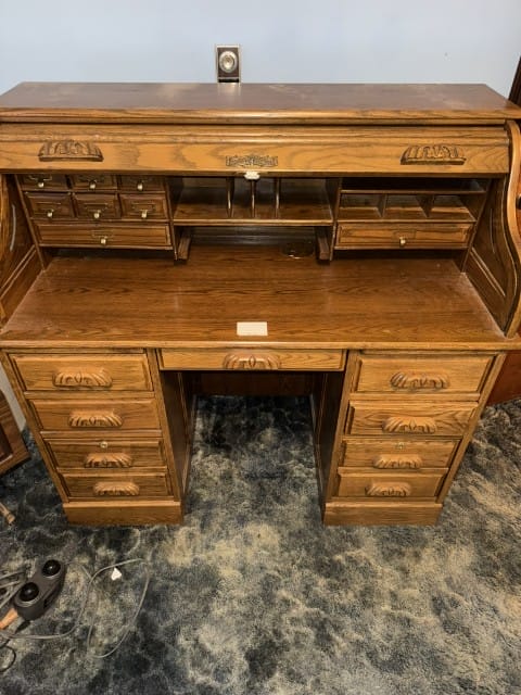- Oak roll-top desk